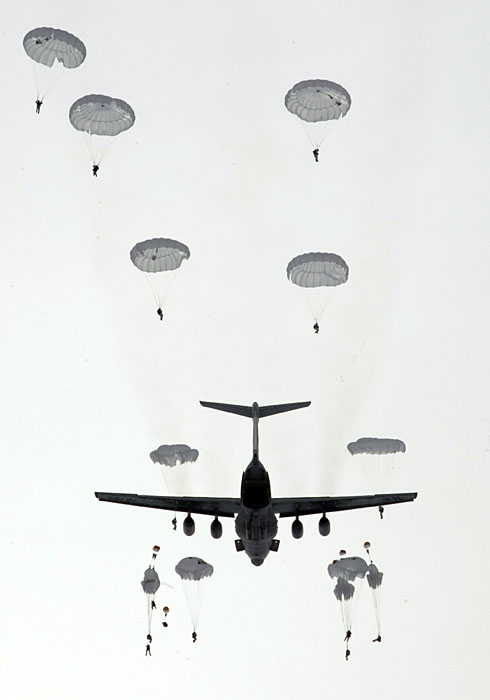 2月18日,俄罗斯第98空降师在莫斯科以东320公里的伊万诺沃市附近举行雪地空降演习。图片来源:中国新闻网