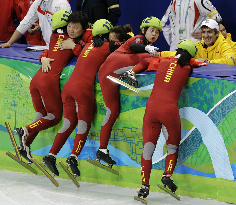 当地时间2月24日,温哥华冬奥会女子短道速滑3000米接力A组决赛中,中国队王濛、周洋、孙琳琳、张会四朵金花联袂出击,最终将金牌归入中国队囊中。这也是本届冬奥会中国队夺得的第四枚金牌。图片来源:中国新闻网
