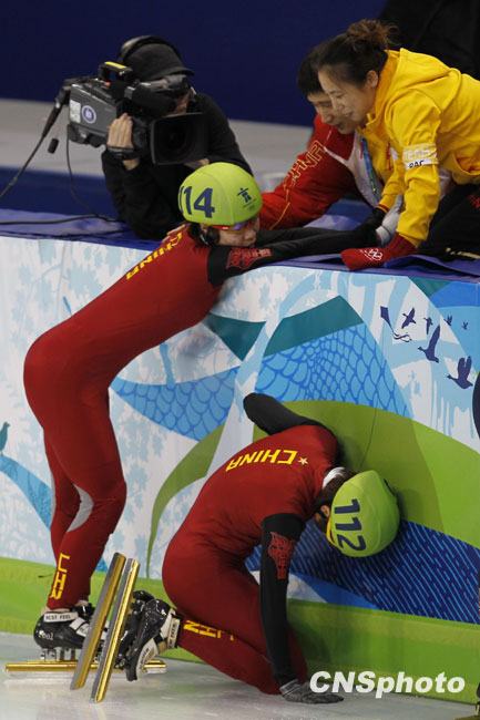 北京时间27日中午,中国选手王濛在2010年温哥华冬奥会短道速滑女子1000米的决赛中摘得金牌,至此,中国短道速滑女队包揽了本届冬奥会女子全部四个项目的金牌创造了历史。中新社发 盛佳鹏摄