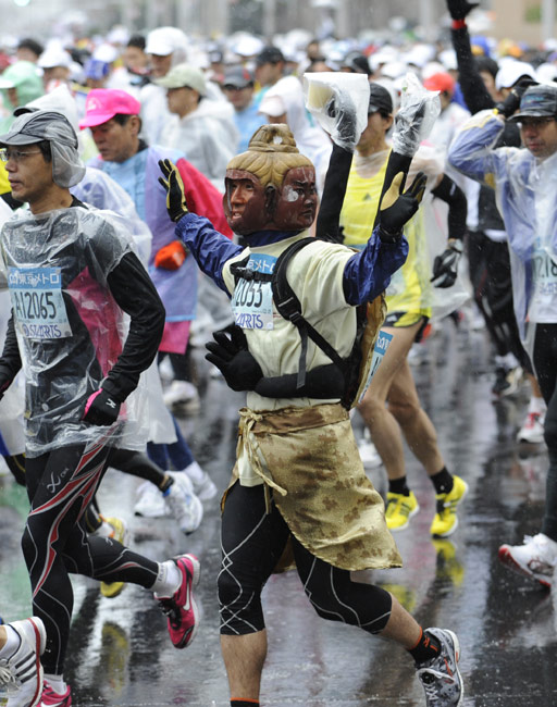 2月28日,日本东京马拉松赛举行,超过30000名爱好者参加了此次马拉松赛。很多参赛者的怪异服装成为了赛场上的一道风景。