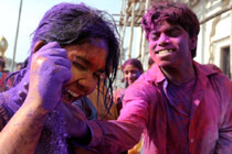 印度民众泼颜料送祝福