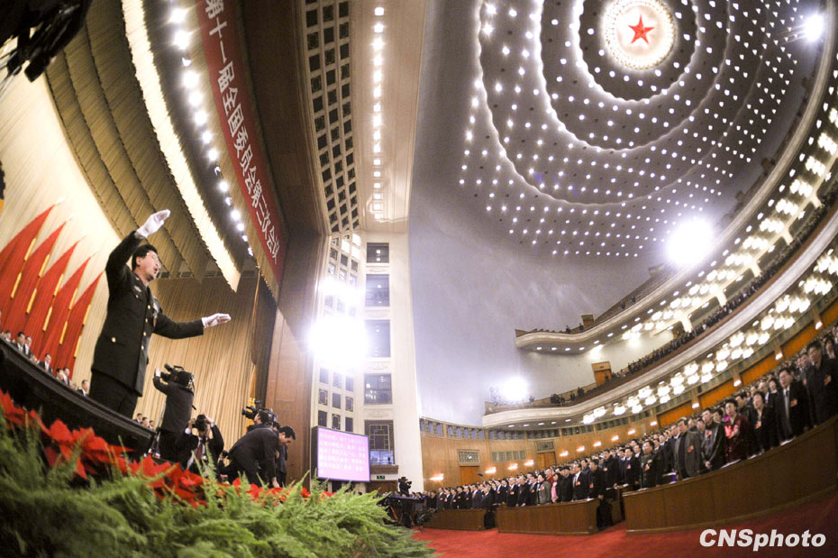 3月3日下午,中国政治生活中的年度盛会——全国政协十一届三次会议在北京人民大会堂隆重开幕。图片来源:中国新闻网