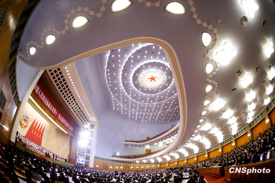 3月3日下午,中国政治生活中的年度盛会——全国政协十一届三次会议在北京人民大会堂隆重开幕。图片来源:中国新闻网