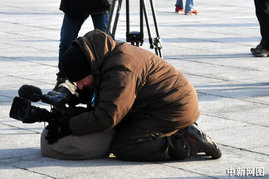 3月5日上午9时,十一届全国人大三次会议在北京隆重开幕。国务院总理温家宝作政府工作报告。图为人民大会堂前等待采访的记者。中新网记者 吴歆摄