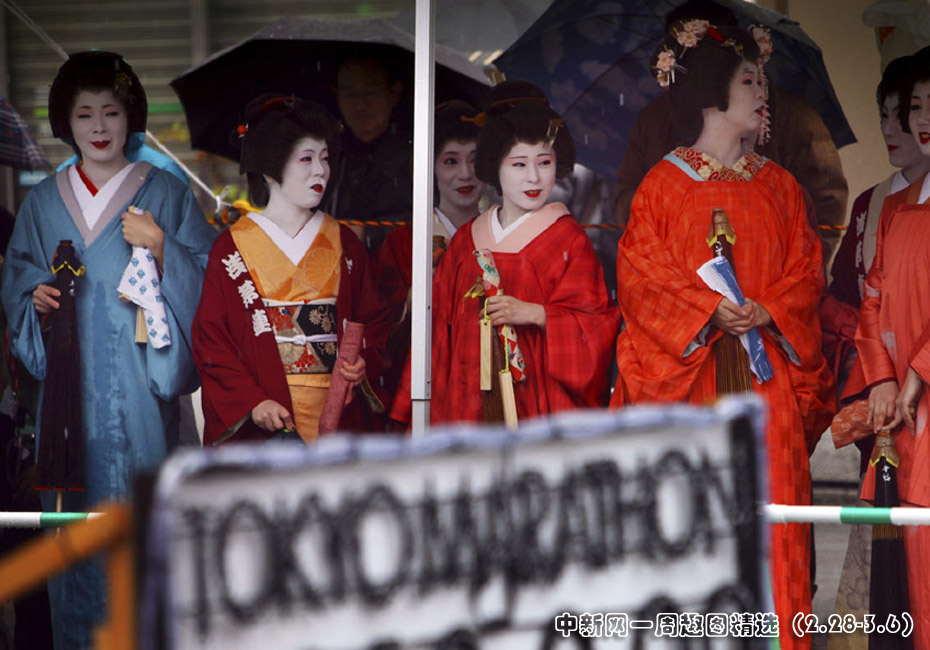 2月28日,日本东京马拉松赛举行,超过30000名爱好者参加了此次马拉松赛。很多参赛者的怪异服装成为了赛场上的一道风景。图片来源:中国新闻网>>点击观看详细内容