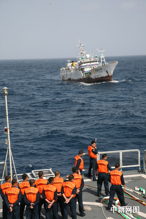 大陆海军护航舰艇接护台湾渔船