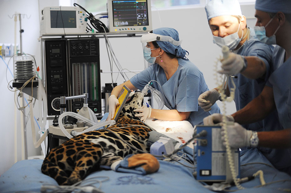 哥伦比亚兽医为美洲虎实施牙齿手术