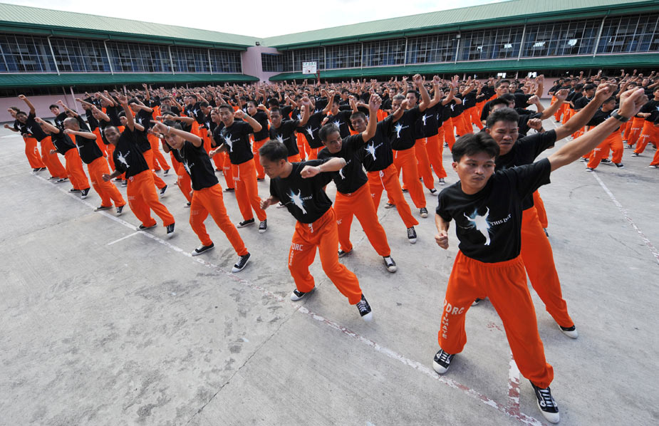 近日,在菲律宾超过1500名囚犯在监狱中集体学习已故歌坛巨星杰克逊的舞蹈,以此来激起他们生活的斗志。图片来源:中国新闻网