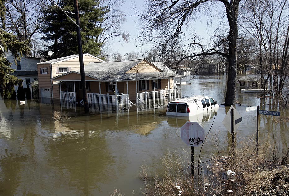 近日,美国东海岸地区再遭暴雨袭击,新泽西州帕塞伊克河洪水泛滥受灾地区民众纷纷撤离家园。图片来源:中国新闻网