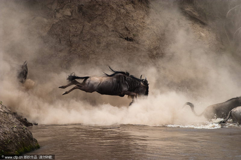 3月17日消息,捷克野生动物摄影师瓦拉夫·希尔哈(Vaclav Silha)在肯尼亚马赛玛拉(Masai Mara)国家保护区拍到了罕见的牛羚大迁移场面。上百万牛羚集体穿越马拉河,同时为了防止被水中的鳄鱼咬到及逃避岸边丛林里的老虎,牛羚群制造出巨大的声响并急冲到对岸。barcroftmedia/CFP