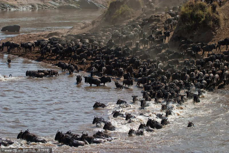 3月17日消息,捷克野生动物摄影师瓦拉夫·希尔哈(Vaclav Silha)在肯尼亚马赛玛拉(Masai Mara)国家保护区拍到了罕见的牛羚大迁移场面。上百万牛羚集体穿越马拉河,同时为了防止被水中的鳄鱼咬到及逃避岸边丛林里的老虎,牛羚群制造出巨大的声响并急冲到对岸。barcroftmedia/CFP