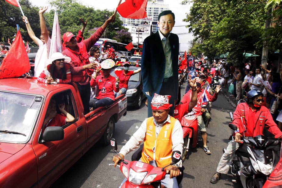 泰国红衫军20日号召数千辆汽车上街,在曼谷大游行,路线总长约45公里,横跨曼谷多条主要街道,势要瘫痪曼谷。军方估计,将有3万红衫军抵达曼谷声援。