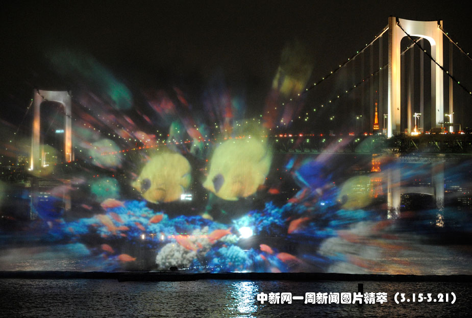 19日(周五)晚,在日本东京湾上演了一场美轮美奂的“海上幻灯。