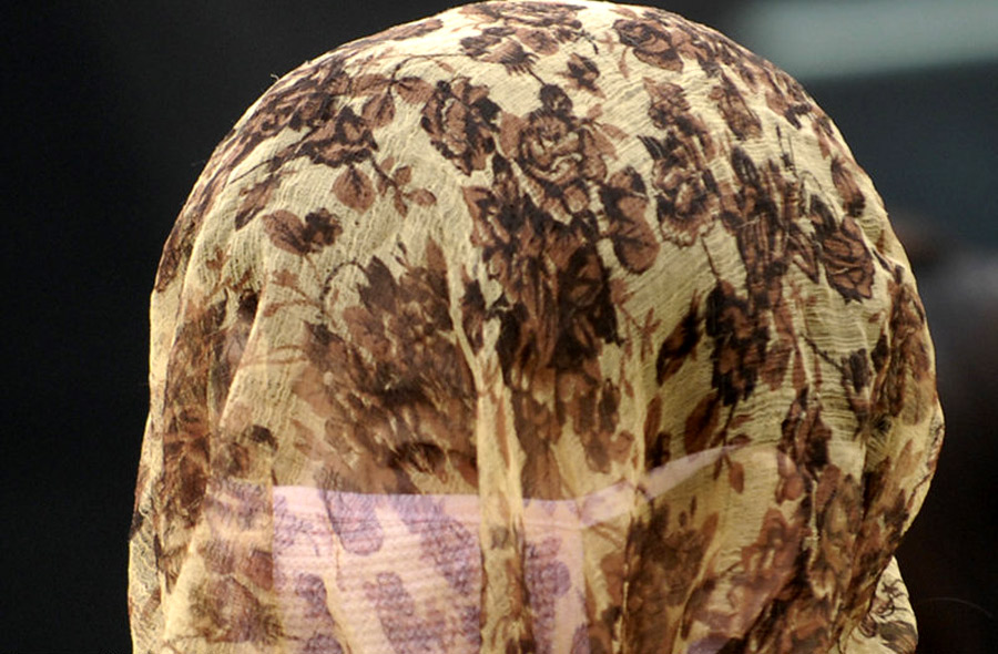22日,天津,为防沙尘,一位市民头戴纱巾,嘴戴口罩。xiaochunhu 摄