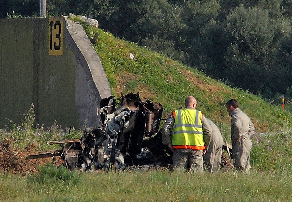 3月23日,英国“红箭”特技飞行队的两架飞机在希腊克里特岛进行训练时不慎相撞,所幸驾驶飞机的两名飞行员成功跳伞,仅受轻伤。图片来源:中国新闻网