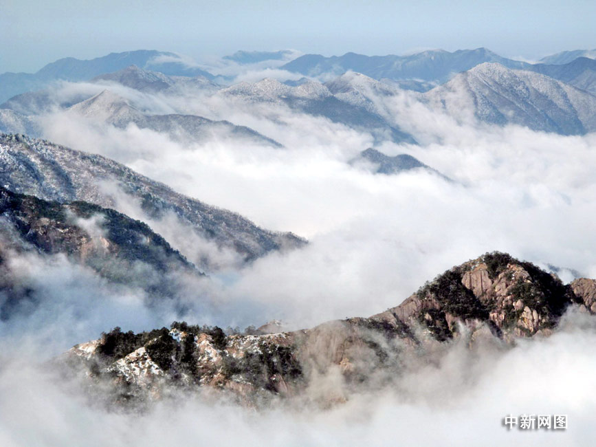 3月25日,春雨初霁,安徽黄山风景区绽放壮美云海,游众置身忘怀“人间仙境”。 图片来源:中国新闻网