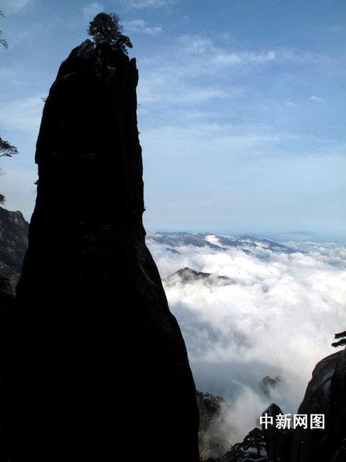 3月25日,春雨初霁,安徽黄山风景区绽放壮美云海,游众置身忘怀“人间仙境”。 图片来源:中国新闻网