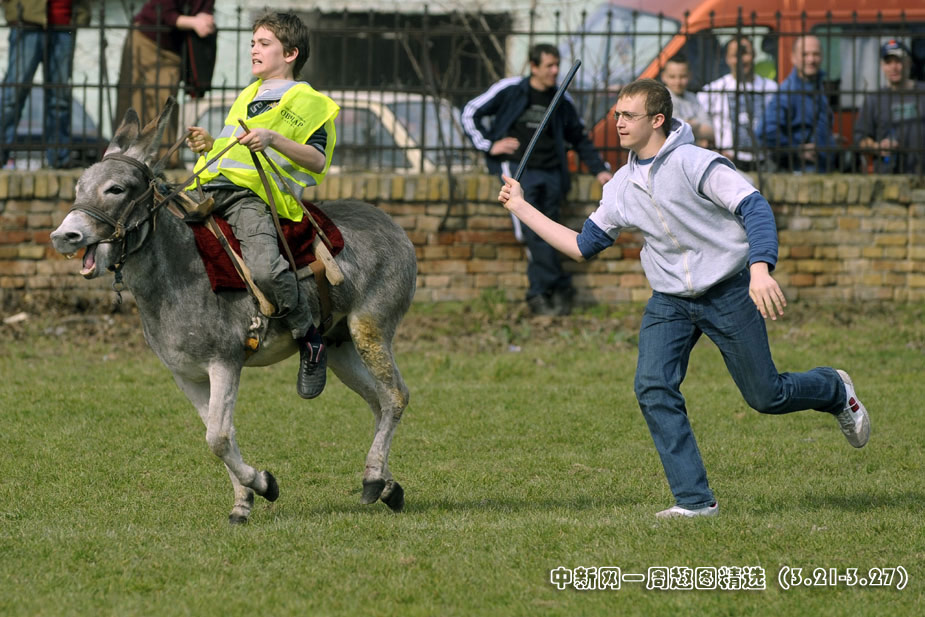 3月20日,在塞尔维亚首都贝尔格莱德西北30公里的一个村庄举行了传统的赛驴大赛。图片来源:中国新闻网>>点击观看详细内容