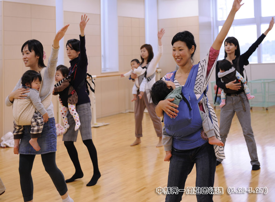 3月24日,在日本横滨市的一堂母婴桑巴课上,妈妈们带着自己的宝宝一起参加舞蹈训练。 凡是孩子年龄在三个月到两岁之间的母亲都可以到这里参加母婴舞蹈课,课程包括桑巴、华尔兹、布鲁斯等。图片来源:中国新闻网>>点击观看详细内容