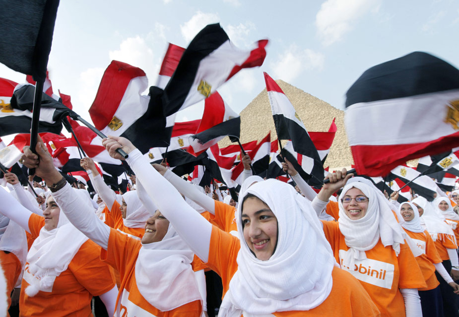 3月26日,4550名埃及儿童在首都开罗市郊的胡夫金字塔前挥舞埃及国旗,创造了在同一地点集体挥舞国旗的吉尼斯世界纪录。