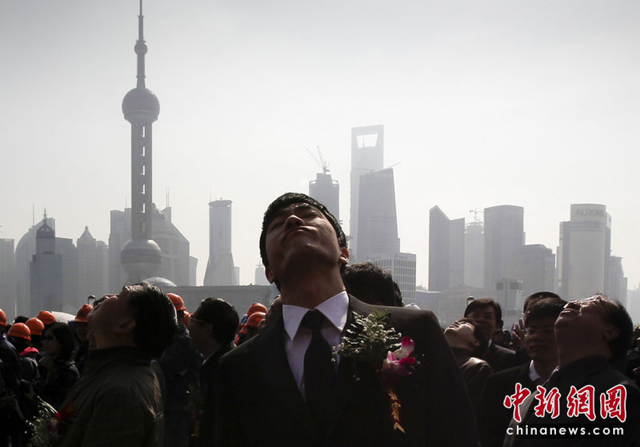体育界代表跨刘翔仰望修葺一新的新外滩。当日上,外滩综合改造工程竣工典礼在外滩滨水平台举行。参与外滩综合改造的技术施工人员代表、外来务工人员代表,支持工程建设的动迁居民代表和市民代表为工程竣工剪彩。 徐晓林CFP