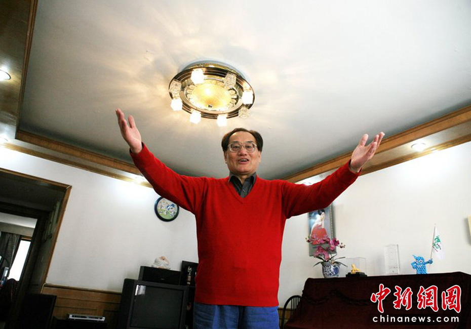 上海市静安区曹家渡社区“世博人家”主人李宗荣向来访宾客介绍自己的体育特色家庭。张波/CFP