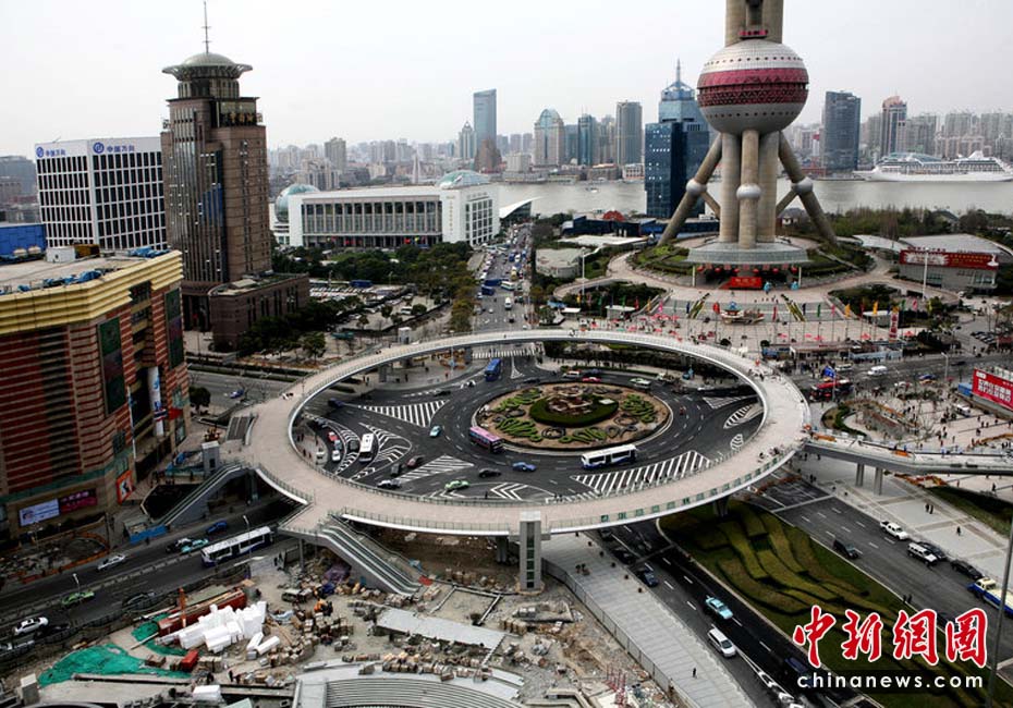 位于上海浦东陆家嘴中心地区的环形天桥——“明珠环”人行天桥基本建成,预计在世博会前正式投入启用。“明珠环”毗邻东方明珠广播电视塔,圆周长370米,设4个出口,并配有步行楼梯、自动扶梯和残疾人无障碍垂直电梯。它的建成已成为陆家嘴金融中心地区一大景观。徐网林CFP