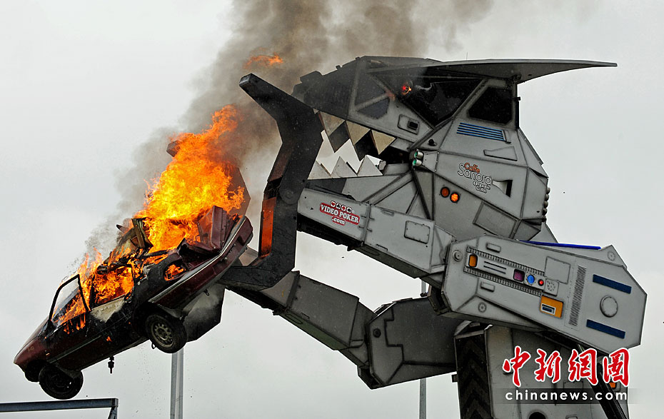 3月30日,一款重约27吨的机器怪兽在澳大利亚悉尼瞬间将一台汽车摧毁。据悉,该款机器怪兽是由30多个公司花了两年时间研究出来的。图片来源:中国新闻网