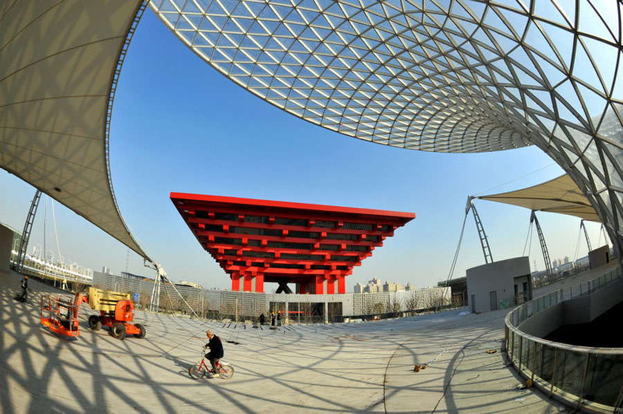 自1851年首次在英国伦敦举办以来,世界博览会已走过了150多年,世博会上各个国家的展馆也成为记录一个国家发展和进步的“书签”。让我们通过这一百多年来出现在世界博览会上的中国馆,来回眸世博会的百年变迁,感受世博会与中国结下的不解之缘。图为建设中的上海世博会世博园区-中国馆、阳光谷、世博轴。至诚/CFP