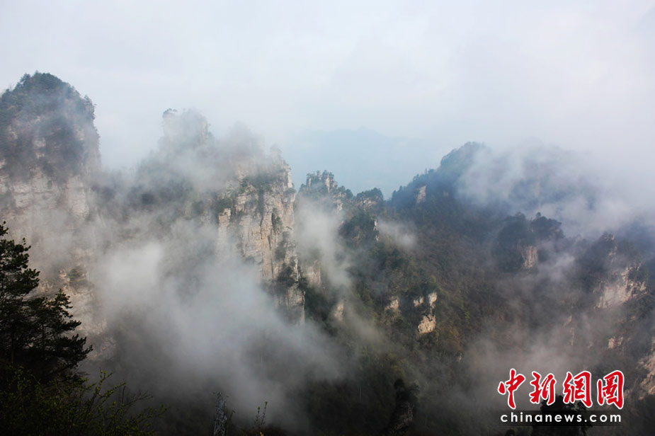 中新网张家界4月8日电(邓道理 邓霞)今晨,雨后初晴的湖南张家界天子山景区出现美丽壮观的云海奇观,风起云涌之时砂岩峰林若隐若现、似梦似幻,胜过《阿凡达》“悬浮山”仙境,令海内外游客惊喜不已。