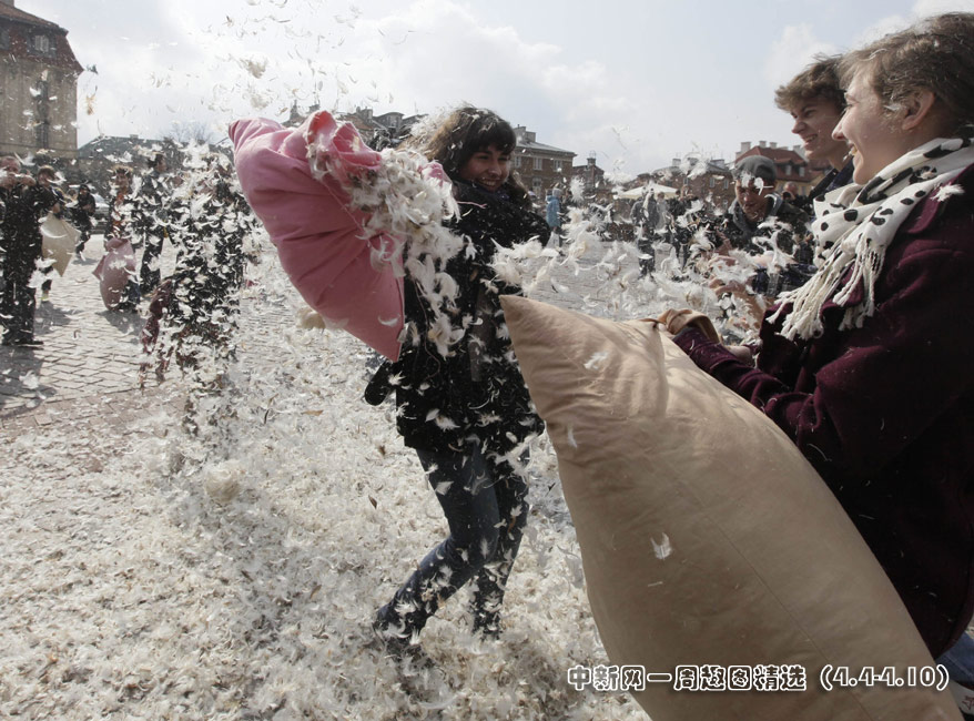 4月3日是国际“枕头大战”日。在这一天,多个国家的“枕头大战”爱好者相约走上街头,用独特的方式来庆祝他们的节日。图片来源:中国新闻网>>点击观看详细内容
