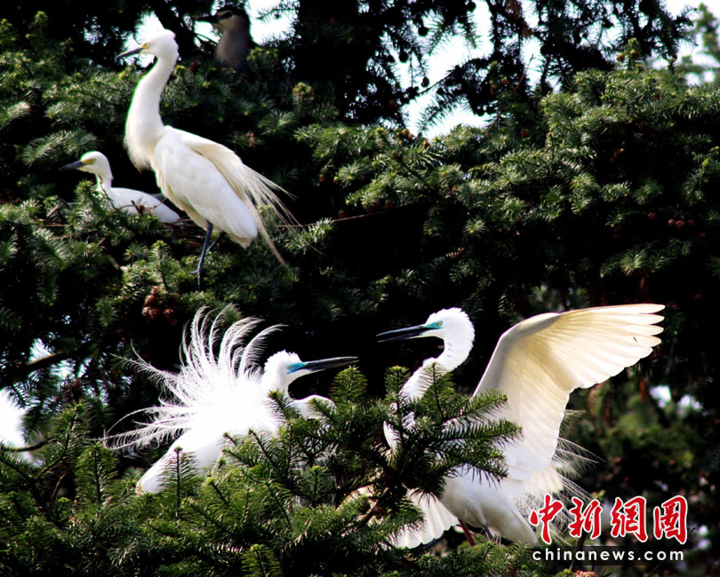 4月9日,一对白鹭在象山森林公园欢跃飞舞,谱写一曲春日恋歌。四月,正值芳草萋萋,万物生机勃勃。万余只白鹭陆续抵达江西南昌象山森林公园栖息,繁衍后代,成为鄱阳湖湿地的一大独特景观, 吸引众多摄影爱好者前来拍摄和观赏。孙永胜 胡国林 摄