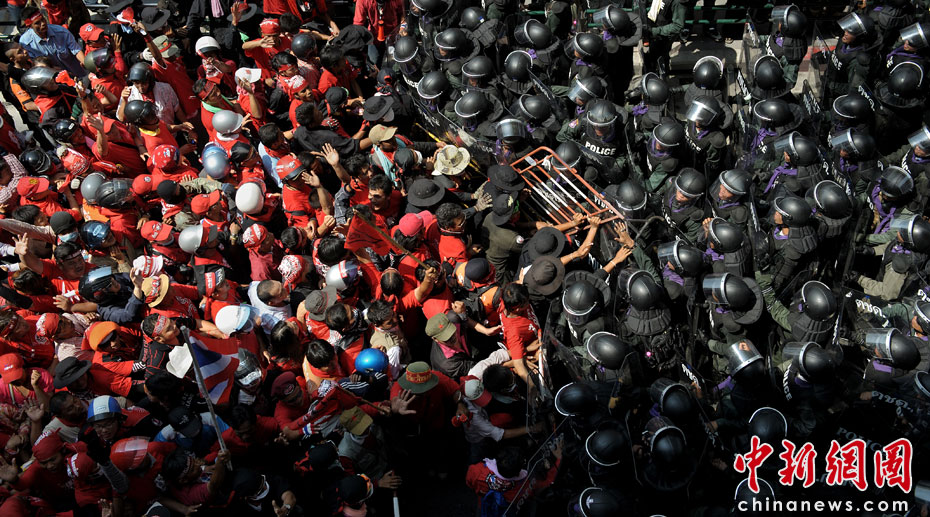 4月10日,泰国军队在首都曼谷对支持前总理他信的“红衫军”进行武力驱散,双方爆发严重冲突,目前已造成18人死亡,数百人受伤。图片来源:中国新闻网