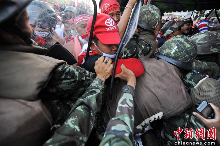4月10日,泰国军队在首都曼谷对支持前总理他信的“红衫军”进行武力驱散,双方爆发严重冲突,目前已造成18人死亡,数百人受伤。图片来源:中国新闻网