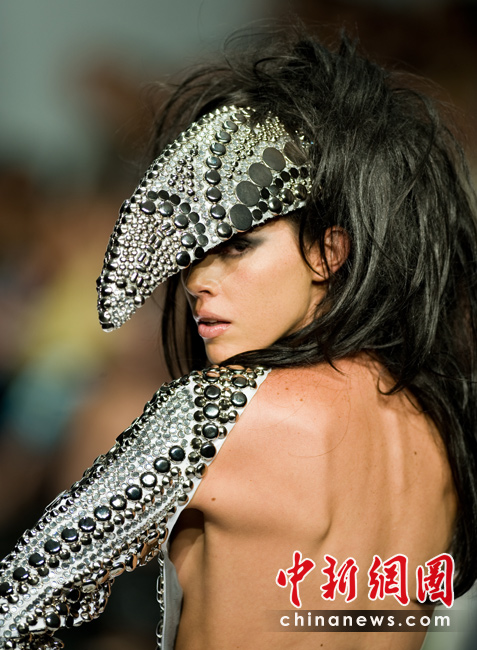 当地时间4月12日,在墨西哥首都墨西哥城举行的奔驰时装周,靓模们各种怪异妆扮在T台上上演了一场让人眩目的造型秀。