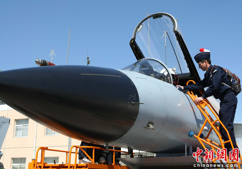 4月13日,47国驻华武官参观了空军航空兵某师新换装的歼十战机飞行表演,并登上驾驶舱与飞行员零距离接触。图片来源:中国新闻网