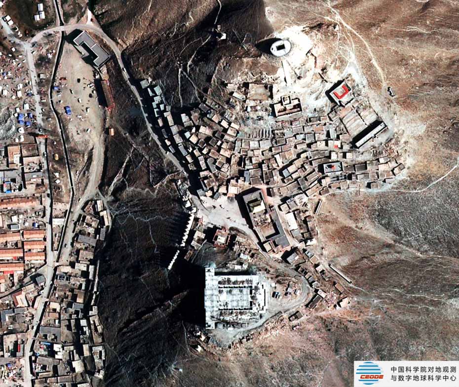 灾后藏传佛教寺庙-嘎结古寺〔由中国科学院对地观测与数字地球科学中心拍摄〕