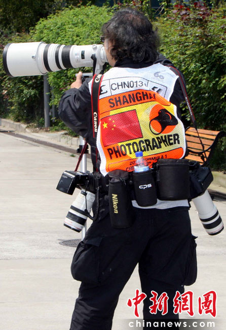 图为全身披挂的专业摄影记者。中新社记者 任晨鸣 摄