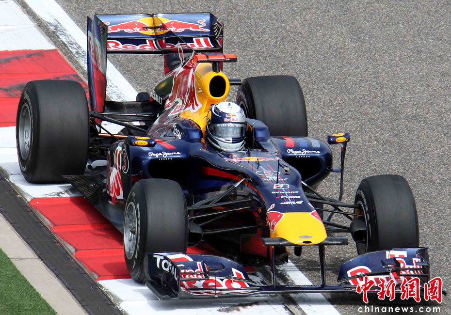 4月17日下午,2010国际汽联F1世界锦标赛上海站在上海国际赛车场举行排位赛,代表红牛车队出战的德国车手维特尔(右)获得杆位,队友、澳大利亚车手韦伯获得第二名,法拉利车队的西班牙车手阿隆索获得第三名。中新社记者 任晨鸣 摄