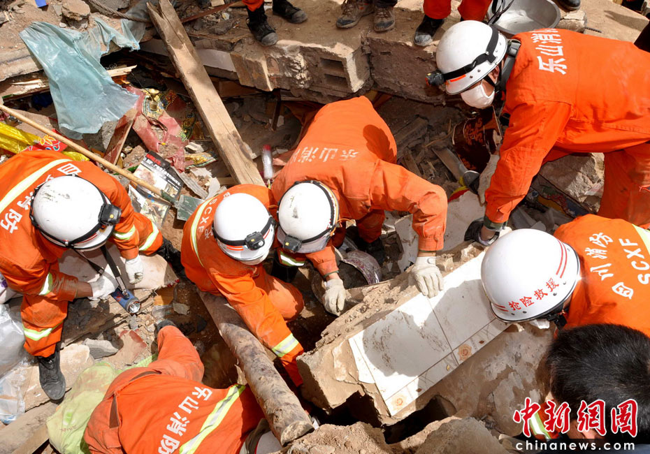 4月16日,青海玉树7.1级地震救援进入第三天,也是“黄金72小时”的关键时机,四川消防官兵在废墟下努力搜寻幸存者,展开了生命大营救,在玉树县城扎西巷一个居民楼救援现场,刨开废墟,一位母亲用身体护着小男孩却未能逃脱劫难,其情其景让人唏嘘不已。中新社发 肖洪环 摄
