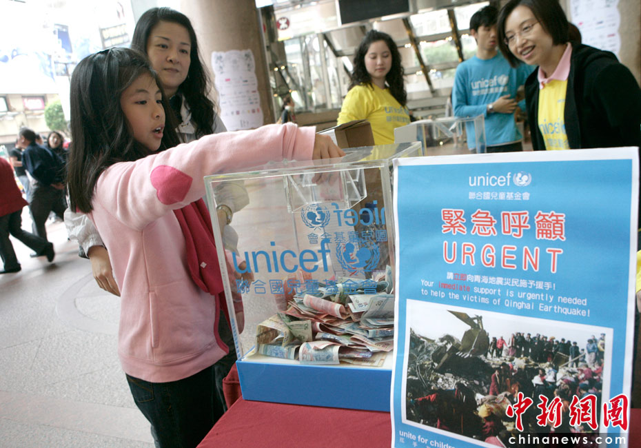 4月18日,香港市民在时代广场募捐。4月14日,青海省玉树藏族自治州玉树县发生7.1级地震,给当地人民群众生命财产造成严重损失。灾情牵动广大香港同胞灾情牵动广大香港同胞的心,连日来,香港社会各界团体及市民纷纷为地震灾区捐款。中新社发 张勤 摄
