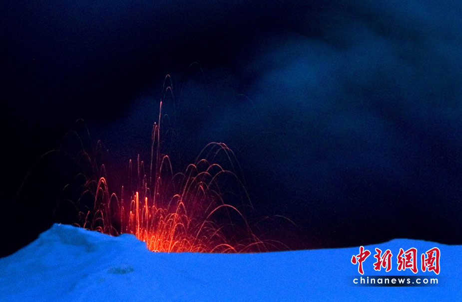 4月19日,冰岛埃亚菲亚德拉火山持续喷发,火山正在由喷出火山灰向喷发熔岩转变。