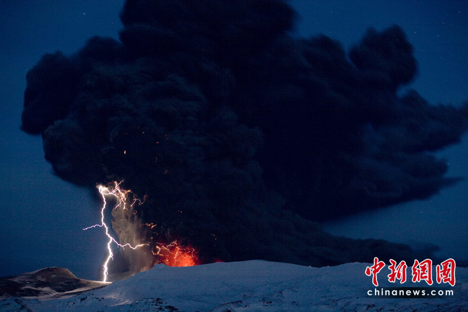 4月19日,冰岛埃亚菲亚德拉火山持续喷发,火山正在由喷出火山灰向喷发熔岩转变。