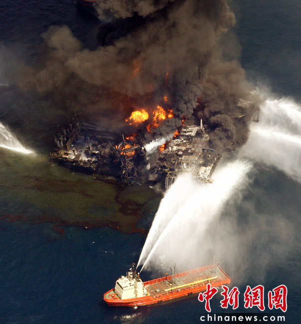 4月21日,美国路易斯安那州一处海上钻井平台发生爆炸,造成至少11人失踪、7人重伤。这起爆炸发生在20深夜,但直到21日中午,爆炸引起的大火仍在熊熊燃烧。目前钻井平台已严重倾斜超过70度,随时可能倾覆入海。