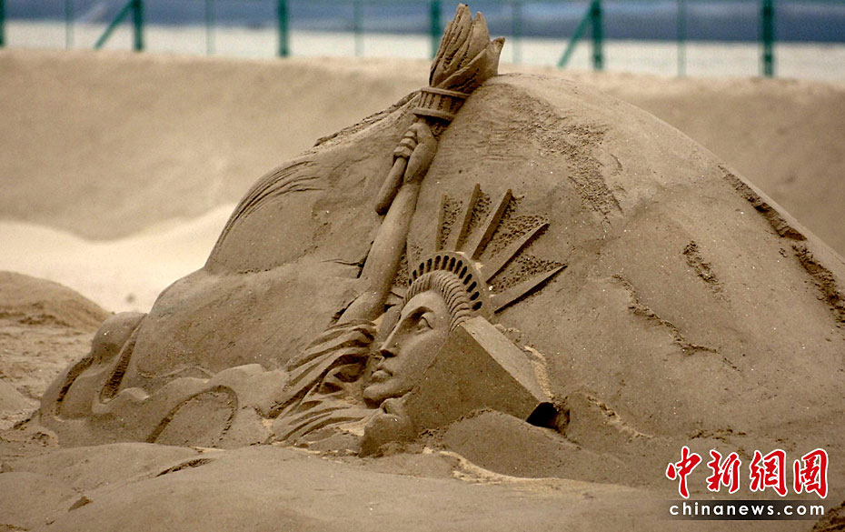 第三届厦门观音山沙雕文化公园于4月22日在厦门观音山黄金沙滩投入试运营。本届沙雕文化公园将以“畅游历史”及“世博文化”为主题,共汇集70余座沙雕作品,规模继续在亚洲称雄。本次2010年观音山沙雕文化公园将分为六大区域,分别是历史主题区、世博专区、海洋文化区、竞赛区、DIY体验区和休闲配套区。尤以世博专区和历史主题区为展示重点。王东明 摄