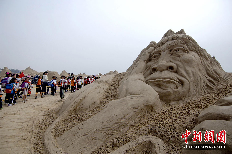 第三届厦门观音山沙雕文化公园于4月22日在厦门观音山黄金沙滩投入试运营。本届沙雕文化公园将以“畅游历史”及“世博文化”为主题,共汇集70余座沙雕作品,规模继续在亚洲称雄。本次2010年观音山沙雕文化公园将分为六大区域,分别是历史主题区、世博专区、海洋文化区、竞赛区、DIY体验区和休闲配套区。尤以世博专区和历史主题区为展示重点。王东明 摄