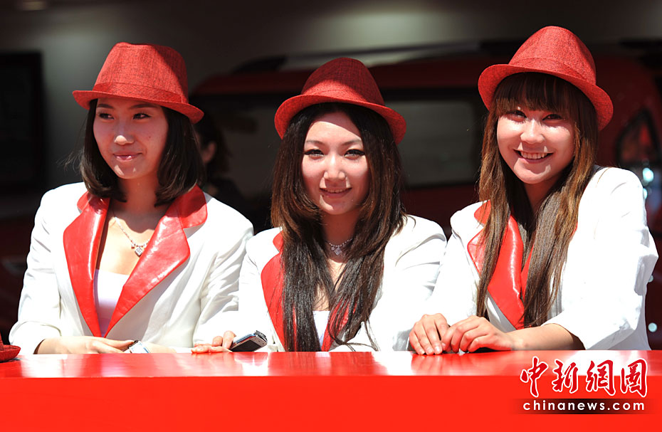 “第十一届北京国际车展”场内车模争奇斗艳,场外美女不甘示弱。中新网记者 金硕 摄