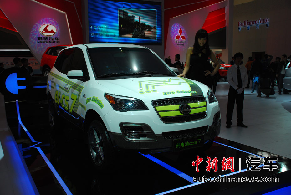 第十一届北京国际车展23日开幕,在本届以“畅想绿色未来”为主题的车展上,新能源车成为最大亮点。图为长丰猎豹CS7电动车 王槊 摄