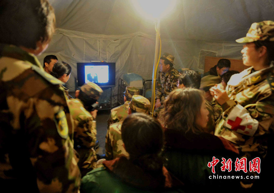 武警青海总队玉树支队是最先投入抗震救灾的先锋部队,地震发生时恰逢部队出操,营房严重受损而官兵平安无恙。这里立即成为抗震救灾的军民和媒体的大本营之一,医疗救护队和新型炊事车昼夜为军民服务。集结在地震灾区的各路部队从4月低之前全面转入安置群众和灾后重建,这里的的后勤已经得到基本保障。 中新社记者 贾国荣 摄