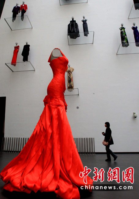 4月27日,上海世博会意大利馆对媒体开放,馆内陈列的品牌时装,气派如贵妇云步。中新社发 潘索菲 摄